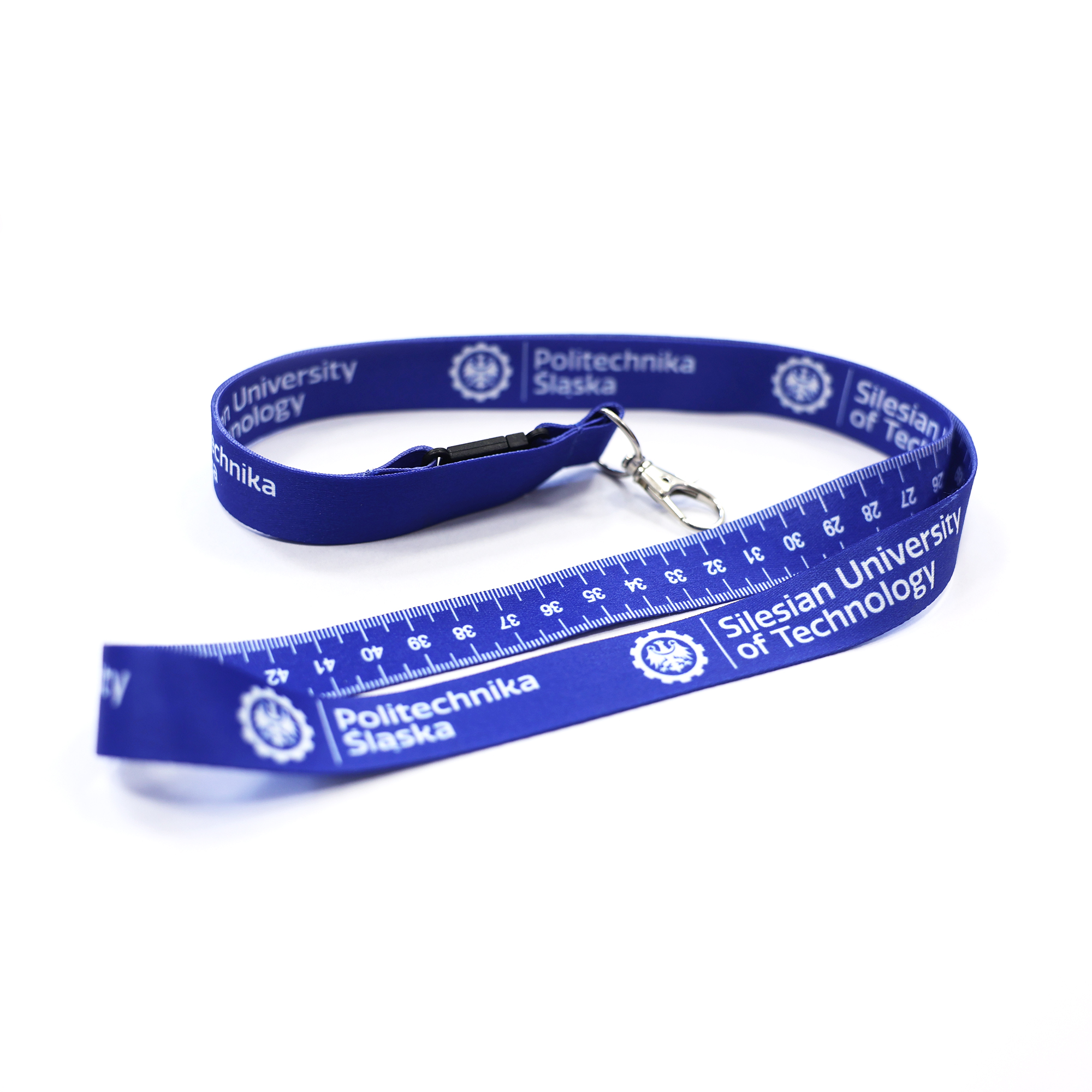Smycz z miarką – z nadrukiem Politechniki Śląskiej
